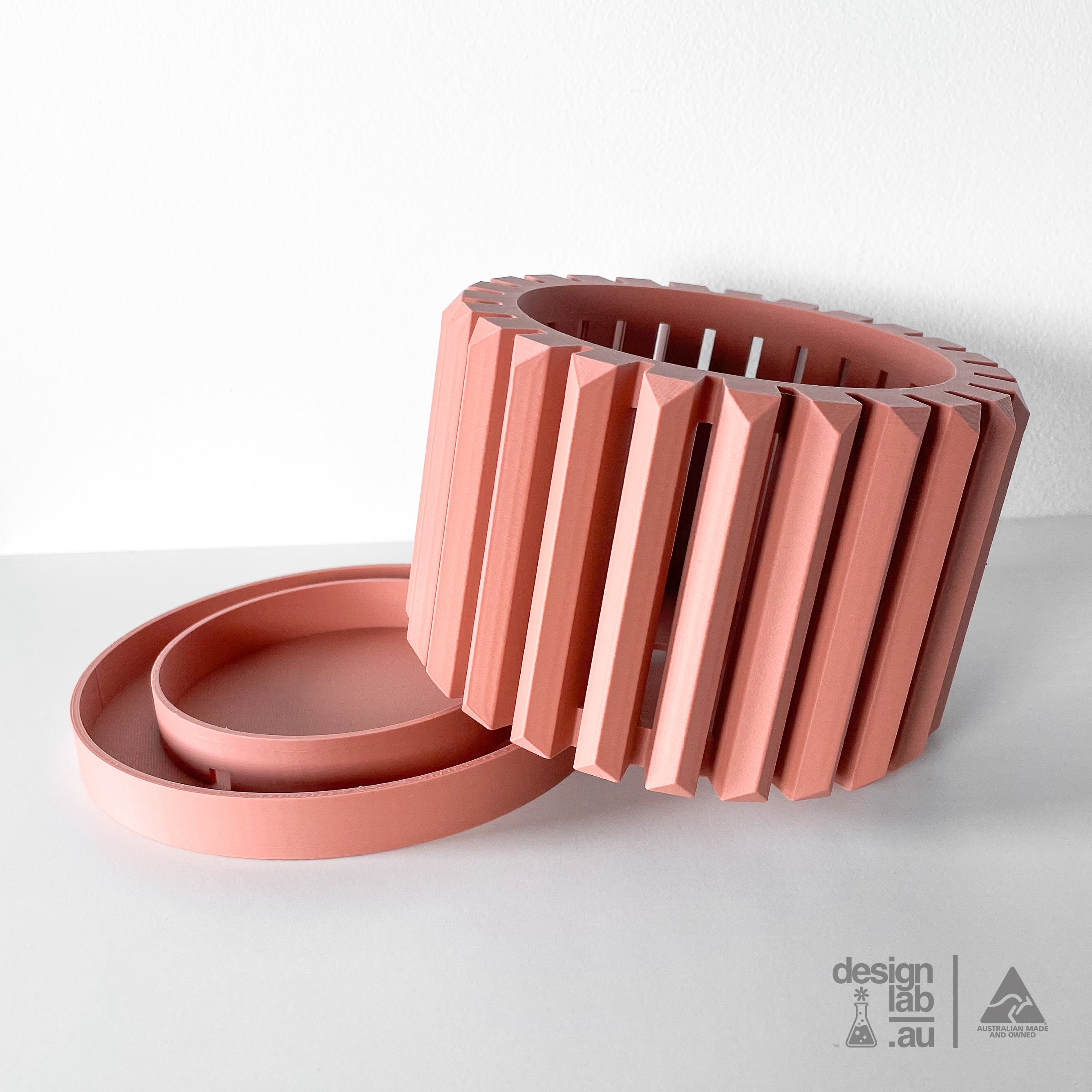 Roboticised fused deposition modeling (R-FDM) additive manufacturing methods (commonly known as 3D printing) and hand finishing are used to make DesignLab products. So, some additive layer lines, and excess deposition flows may be visible. They are considered normal and part of the standard 3D product aesthetic.